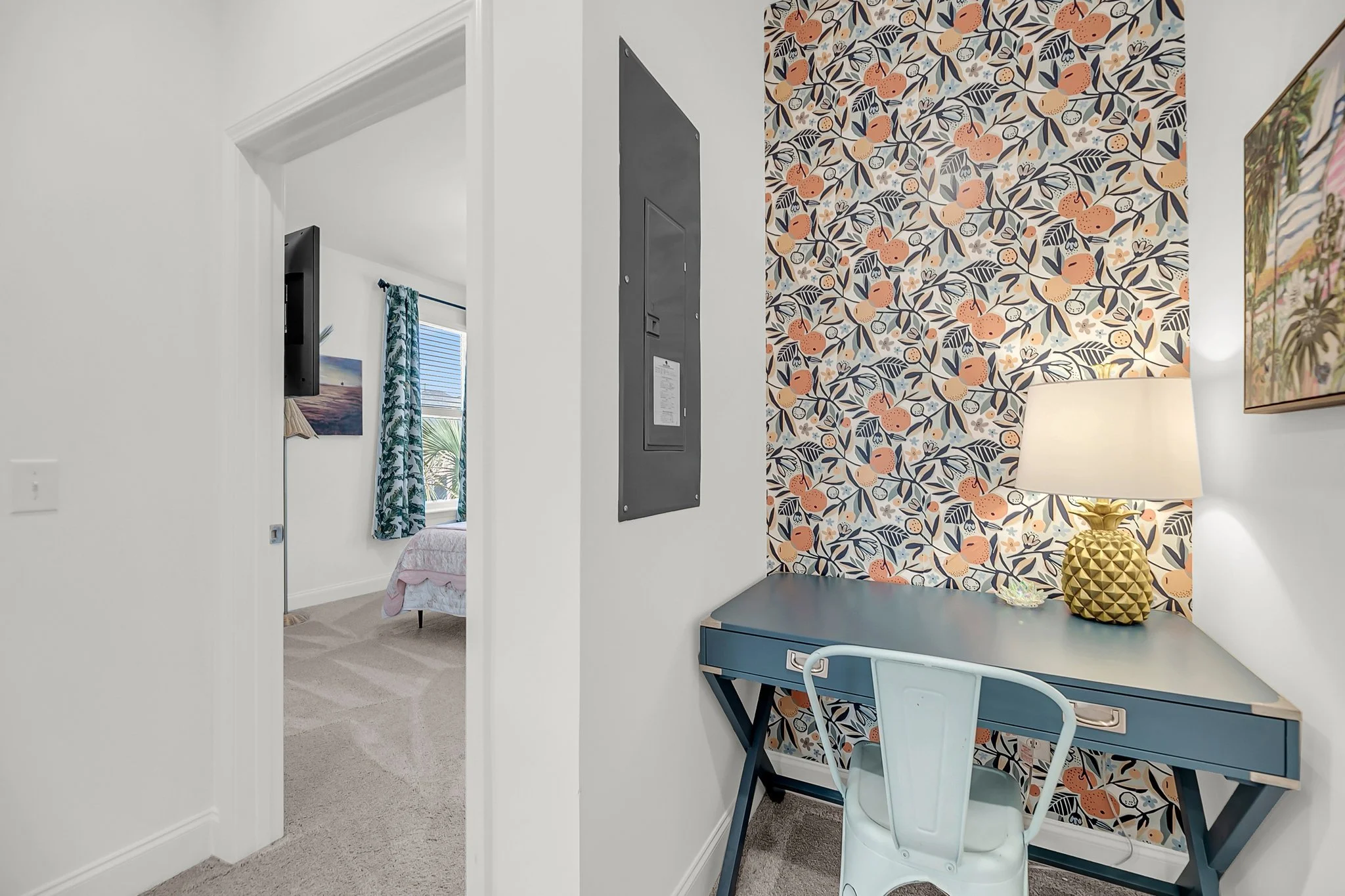 At the top of the stairs, you’ll find a dedicated workspace—ideal for remote work, studying, or planning your next day’s adventures.